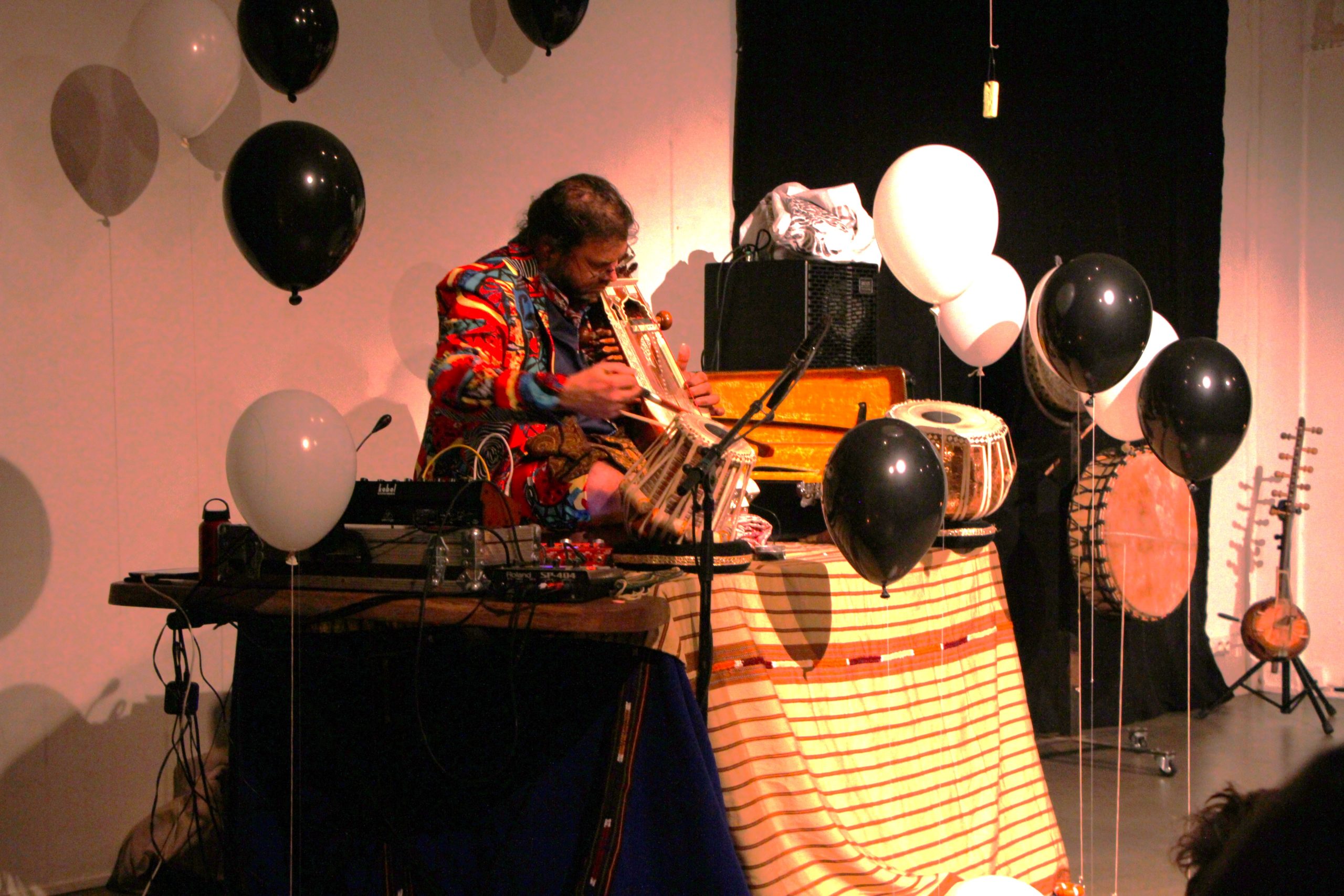 Jahanguir Hugo Nazir mixe un élixir alambiqué entre instruments traditionnels Pakistanais et instruments synthétiques. Entre les multiples rythmes-Talas- de la péninsules indo-Pakistanaise et les infinies possibilités sonores de la musique électronique, il prend comme un pont les vibrations des cordes du n’goni et les vibrations à l’archet du Sarangui ( so = cent et Rang = couleurs, en Ourdou : l’instrument aux cent couleurs.)